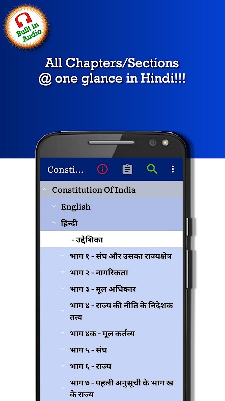 ✓ Es una aplicación políglota, es decir, la Constitución de la India completa está disponible en inglés, hindi y maratí.