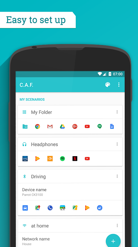 Una amplia gama de factores desencadenantes hace que sea posible cubrir los casos de uso más comunes. Disponibles son: Auriculares, GEO Localización, Wi-Fi, Bluetooth, combinada, de carga, llamadas, y Tasker App-Notificación
