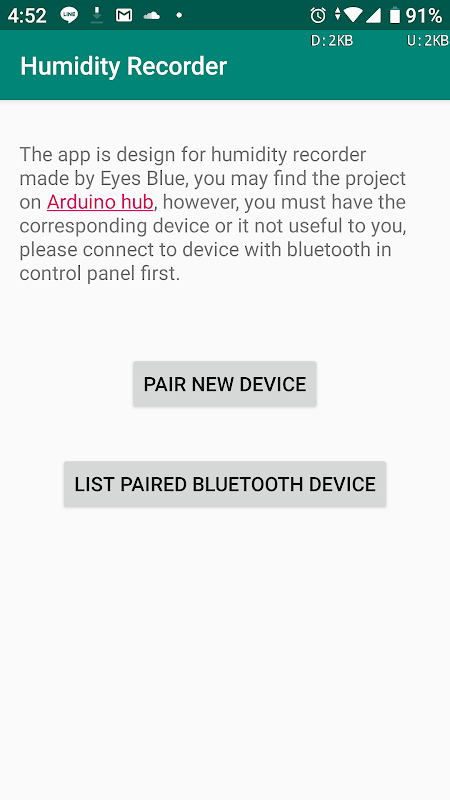 La aplicación está diseñada para el registrador de humedad hecha por Eyes Blue, puede encontrar el proyecto del registrador de humedad desde el centro de Arduino (https://create.arduino.cc/projecthub/eyesblue/humidity-recorder-control-with-android-app- 3ccb1e), sin embargo, debe tener el dispositivo correspondiente o la aplicación que no le sea útil.