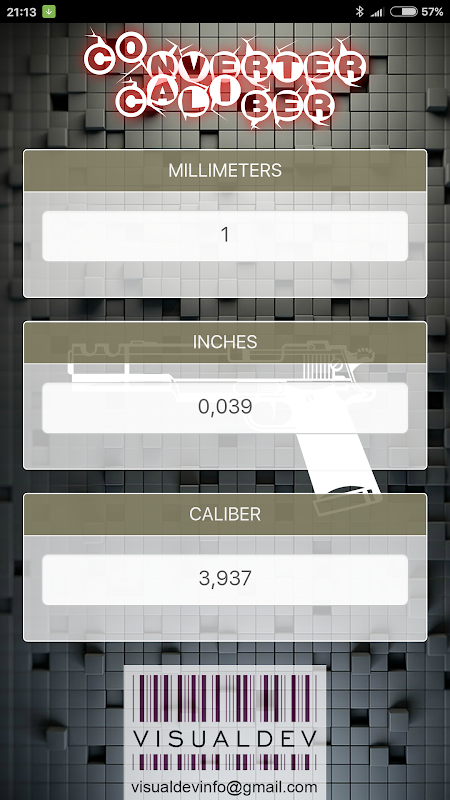 Calculadora calibre. Calibre / milímetros / pulgadas