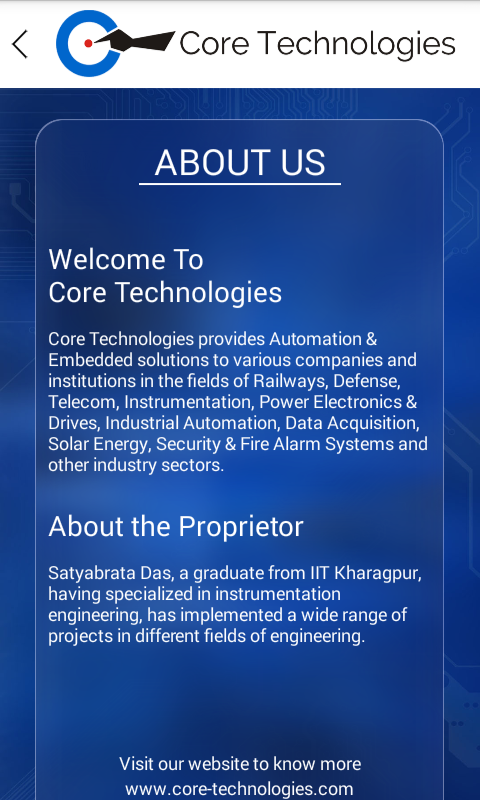 Tecnologías Core aplicación móvil traerá la información pertinente de la empresa.