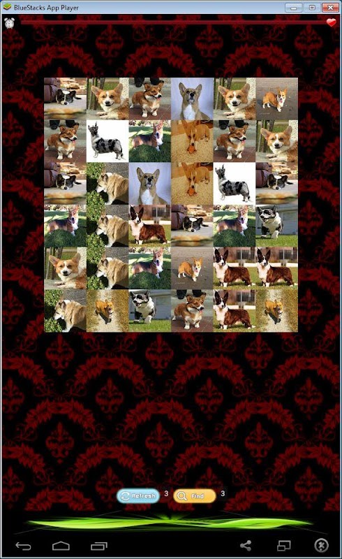 The game details are as follows: The forward arrow in Corgi Game takes you to the next round, while the middle button, the arrow that circles around, allows you to repeat a round with the same amount of time. Occassionally, the pieces of the puzzle will be configured in such a way that no link matches will manifest, therefore you have the opportunity to use the "Refresh" button three times to change the pieces around and allow you to move forward. (No obstacles will block your path to victory and accomplishment.) Also, sometimes you need a little help along your journal. Just hit the "Find" button and that link match that originally evaded your initial perception will be connected for you. It's okay, we're all human. (Sometimes, it's okay to just ask for help. As humans, we're meant to depend on each other.)