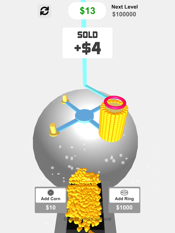 Simplemente administra tu máquina de maíz agregando, fusionando y cortando el maíz. Vende tu maíz para ganar más dinero y avanzar.