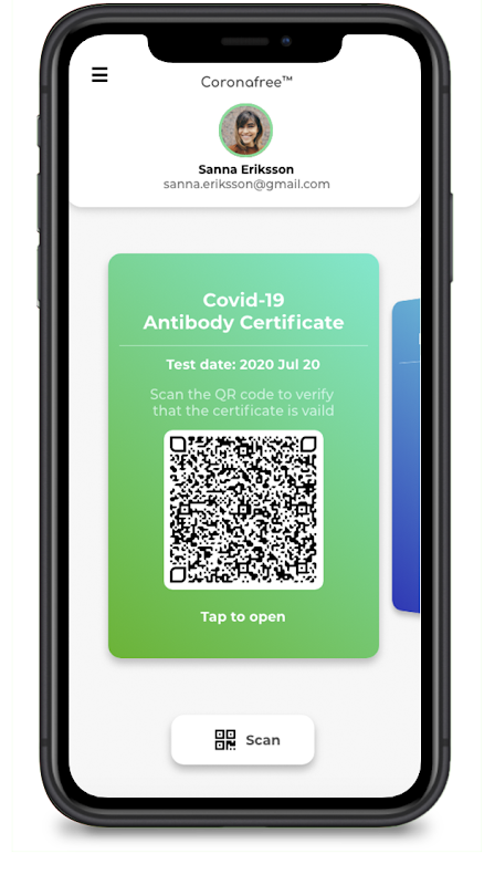 La aplicación Coronafree le brinda una manera conveniente de almacenar, administrar y verificar sus certificados de salud Covid-19 cuando viaja, trabaja o asiste a reuniones sociales cuando sea necesario. La aplicación brinda acceso y la capacidad de ver el resultado de su prueba Covid-19 y todos sus detalles relevantes en un formato digital estandarizado que está con usted en todo momento. Y con los códigos QR inteligentes y el escáner incorporado, la autenticidad de un certificado se puede verificar fácilmente de manera confiable.