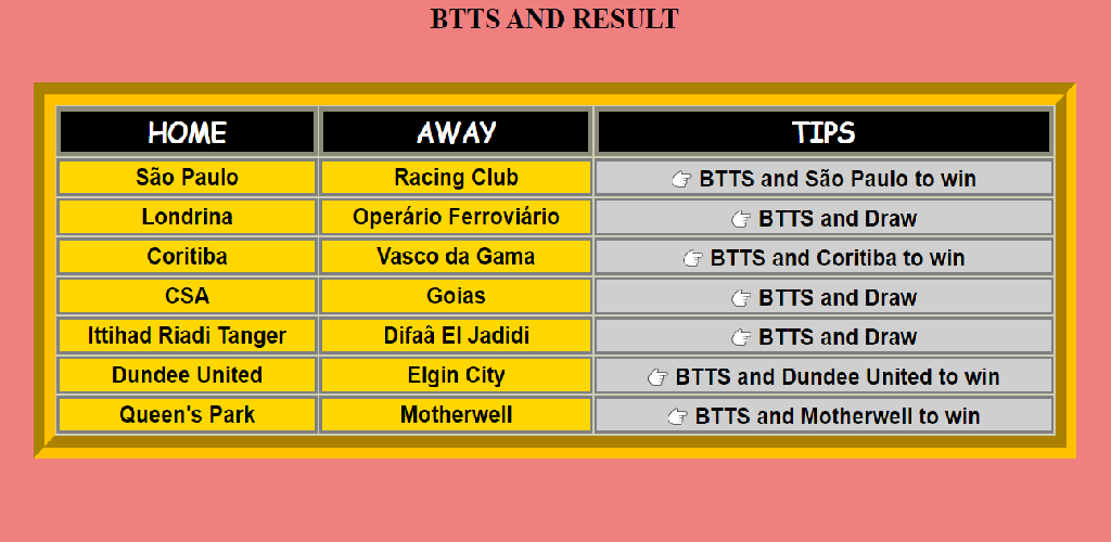 Half time full time tips added