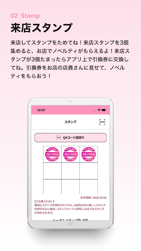 ¡Ven a visitarnos y colecciona sellos! Si consigues 3 sellos de visita, ¡puedes conseguir una novedad en la tienda! Si acumulas 3 sellos de tu visita, canjéalos por un vale en la app. ¡Muestre el ticket de cambio al dependiente de la tienda y obtenga una novedad!