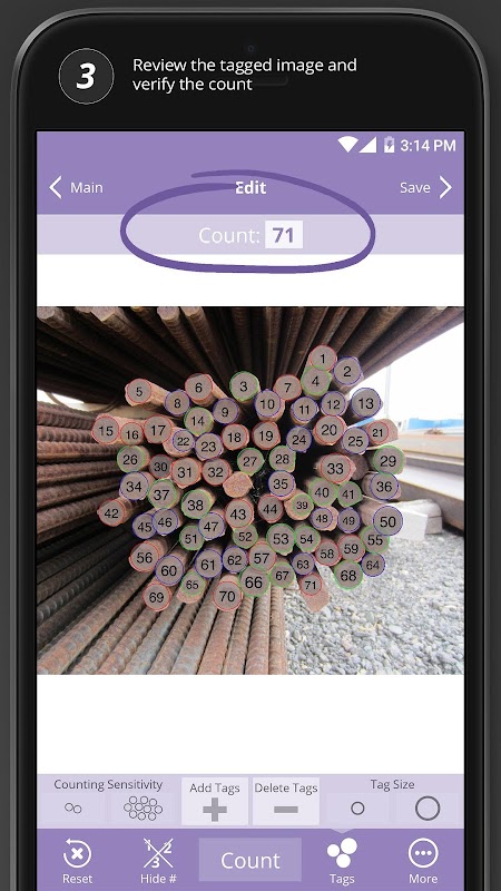 Count stacks of solid-face bars, rebars and rods quickly from your mobile device