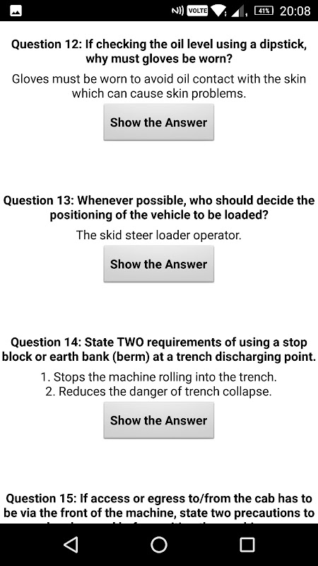 La aplicación contiene las 63 respuestas para el examen teórico oral CPCS A23 Skid Steer Loader.