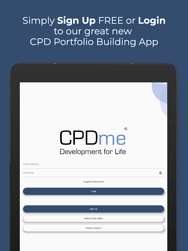 - Inicie sesión en la aplicación móvil como miembro existente de CPDme para capturar su desarrollo en movimiento.