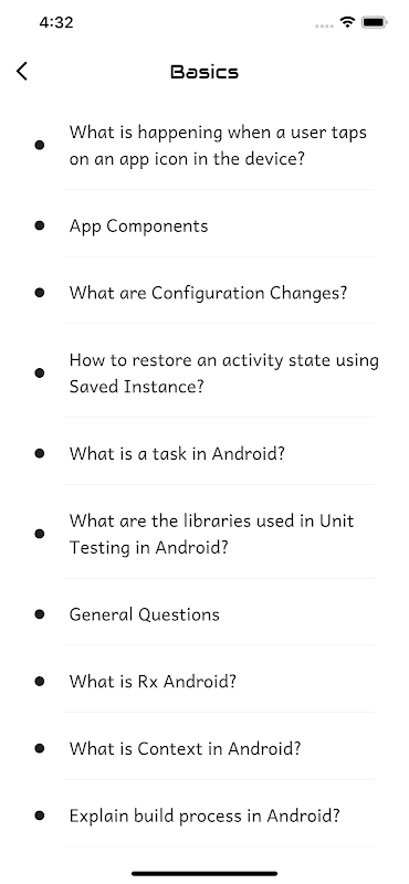 Con un simple deslizamiento de su dedo, mire las respuestas y revíselas más tarde. También tiene la opción de seleccionar sus propias tecnologías. Incluimos todos y cada uno de los conjuntos de tecnologías como Angular, Flutter, Kotlin, Azure, Android, iOS, Javascript , SQL, .Net, React Native, Algoritmos, Swift ..
