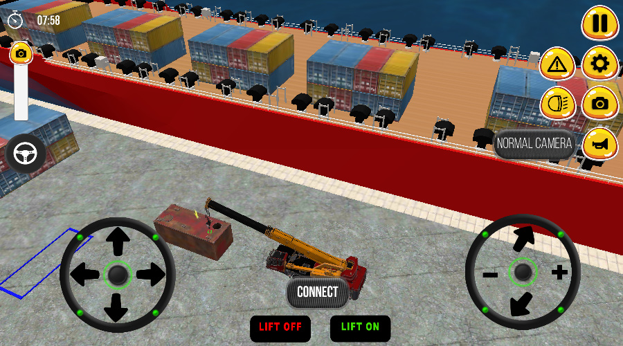 In our game you can load and unload containers onto ships with the help of cranes and forklifts like a real docker.
