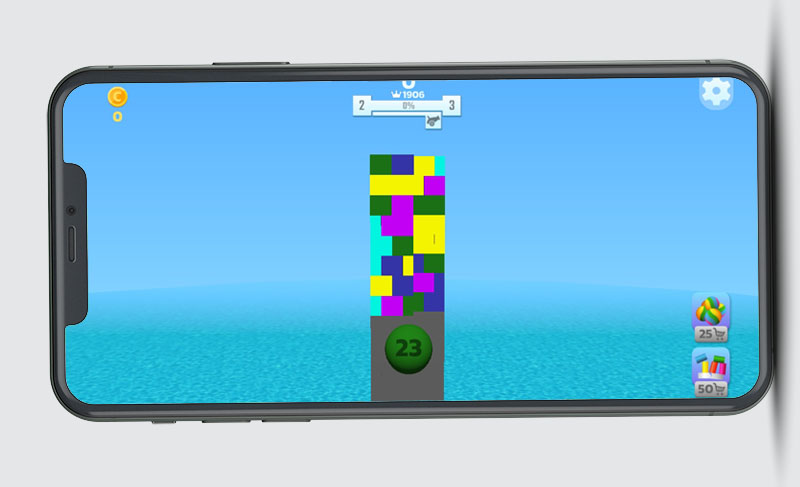 Shoot the yellow ball to the yellow squares in the tower, and the blue balls to the blue squares, target the squares with the largest number of squares