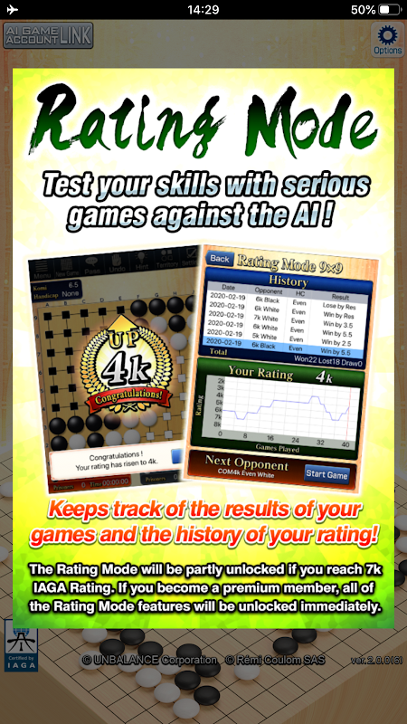 * Esta aplicación está certificada por la Asociación Internacional de Go con IA