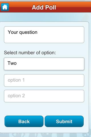 Imagine getting instant feedback from audience any big just for 1.99$. very useful in seminar, corporate environment or even friends.Share your poll questions on social network for friends to answers.