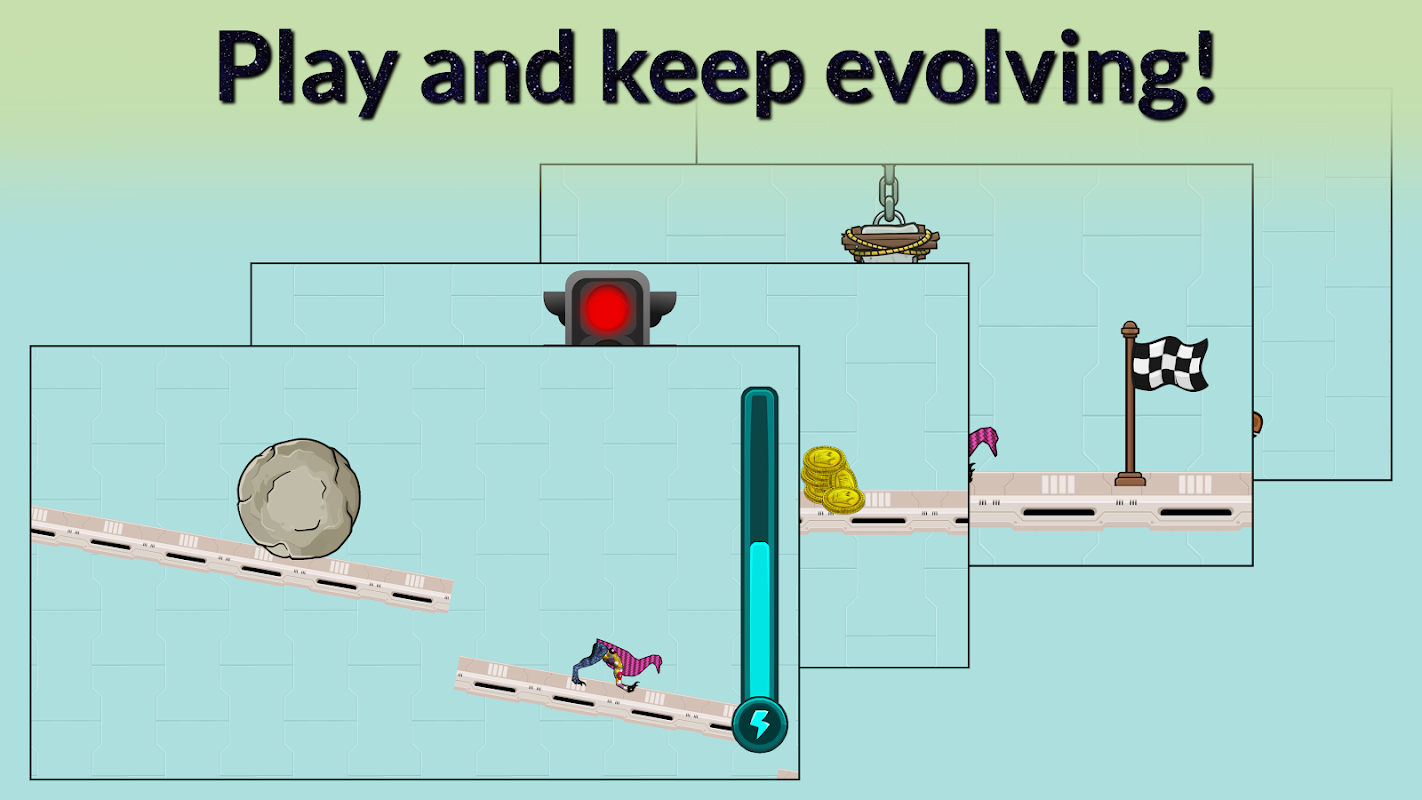 • Evolución real: ¡observa un algoritmo evolutivo único en su tipo en funcionamiento a medida que evoluciona tu criatura y explora el alcance de sus habilidades!