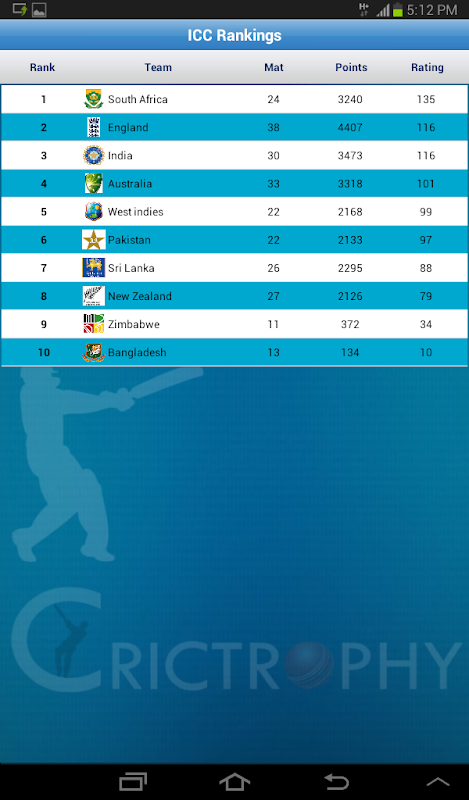 Also you can access the latest cricket news and ICC ratings which will shows ratings for all cricket teams.