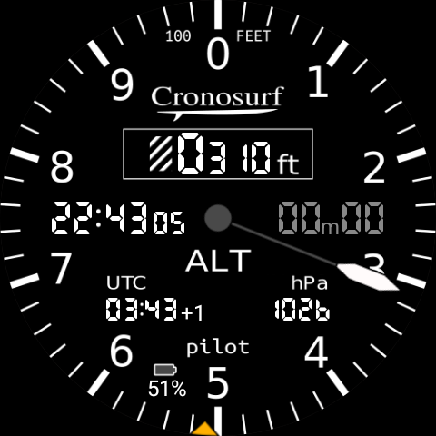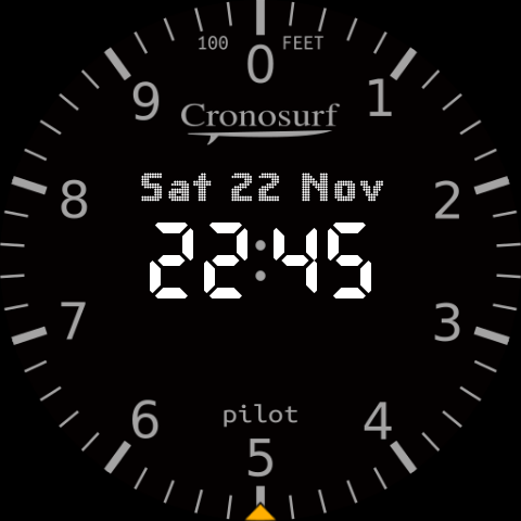 Cronosurf Pilot es una esfera de reloj independiente para smartwatches con Wear OS (no necesita app complementaria) con el diseño y algunas funciones de los relojes de cabina. Tanto si eres piloto como si simplemente te apasiona la aviación, ¡esta esfera es para ti!