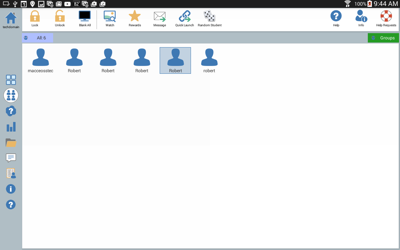 • WiFi/Battery Indicators: View the current wireless and battery status for each connected student tablet.