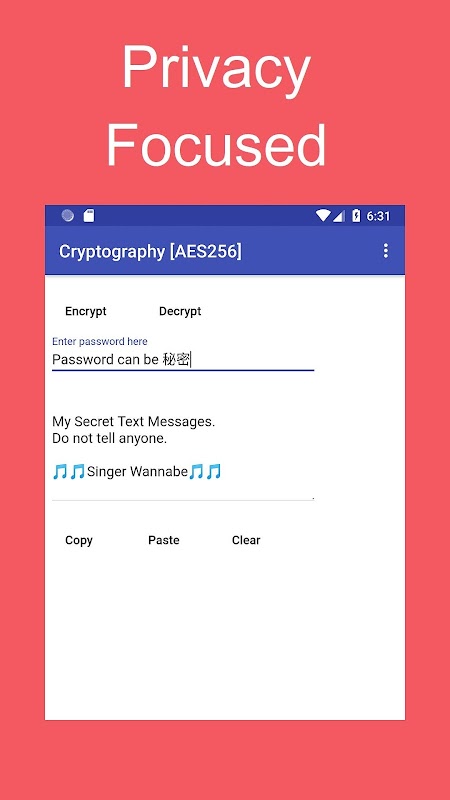 Asegure su texto secreto con cifrado AES-256 con esta aplicación de permiso cero.