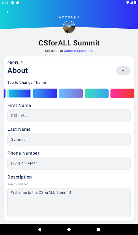 Con la aplicación CSforALL, puede interactuar con la agenda de la Cumbre de CSforALL, buscar y conectarse con otros asistentes a la cumbre, y recibir notificaciones automáticas para cualquier actualización y cambio en el sitio durante la cumbre.