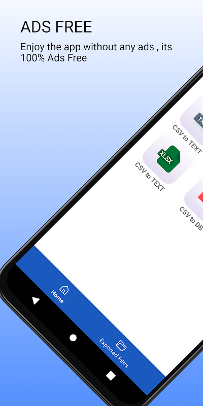 Presentamos CSV Master File Converter de Droidrocks: ¡la solución definitiva para todas sus necesidades de conversión de archivos CSV! Nuestra aplicación potente y fácil de usar le permite convertir archivos CSV en una amplia gama de formatos, incluidos PDF, XML, XLS, XLSX, DOCX, texto, HTML, JSON y .db. Diseñado para simplificar sus conversiones de archivos, CSV Master File Converter ofrece una experiencia perfecta que le permite concentrarse en su trabajo mientras nuestra aplicación se encarga del resto.