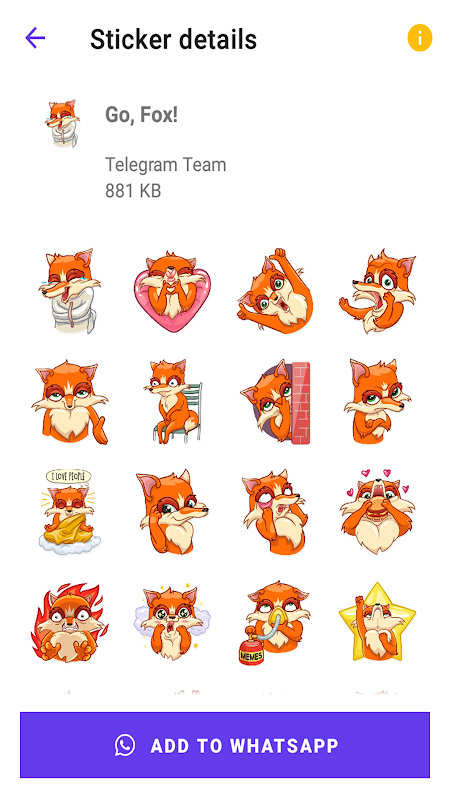 Esta aplicación de Sticker no está respaldada ni afiliada por WhatsApp Inc. La mayoría de las imágenes de zorros son generadas por los usuarios. Si cree que el contenido infringe sus derechos de autor, contáctenos a: [email protected]