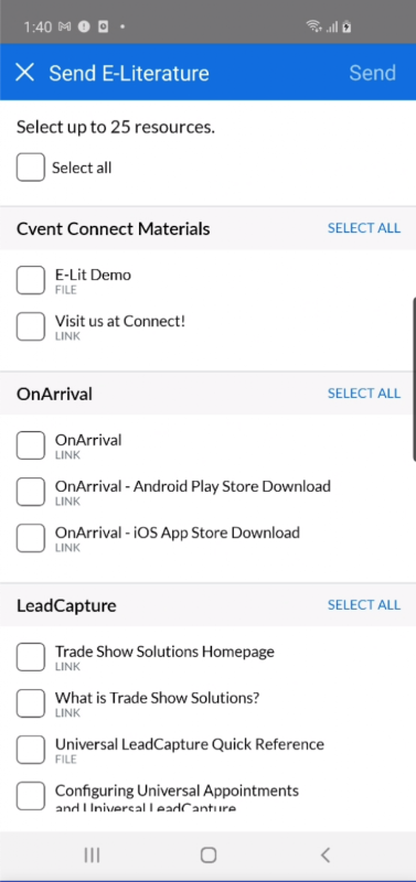 Aplicación de Soluciones OnSite de Cvent para escanear conduce utilizando su propio dispositivo.