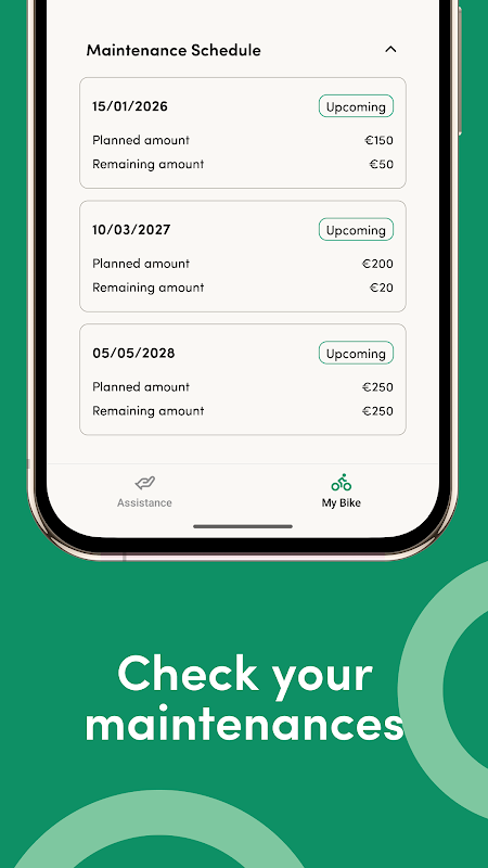 Consulta los detalles de tu bicicleta, tu historial de mantenimiento, el estado del alquiler o informa sobre problemas, todo en un solo lugar.