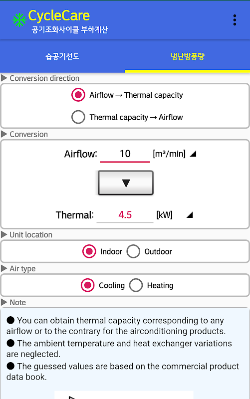 CycleCare - 실내 공기 및 공조 부하 계산 1.0