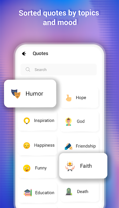 Navegue fácilmente a través de nuestras categorías, como motivación, amor, éxito y divertido, para encontrar la cita y los consejos de la vida perfectos para cualquier ocasión. Marque sus favoritos y cree una lista de sus citas favoritas para consultar cuando necesite un impulso.