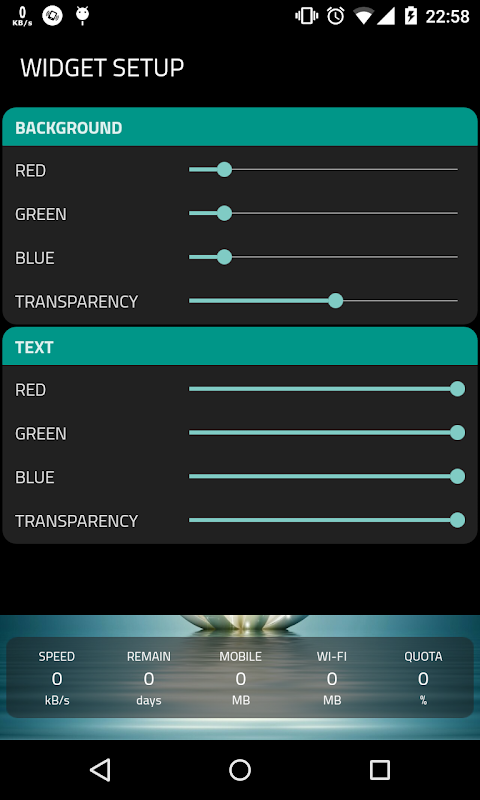 # Altamente personalizable widget de muestra utilizado límite, la velocidad actual de Internet, se utiliza la itinerancia de datos, utilizado datos móviles / Wi-Fi