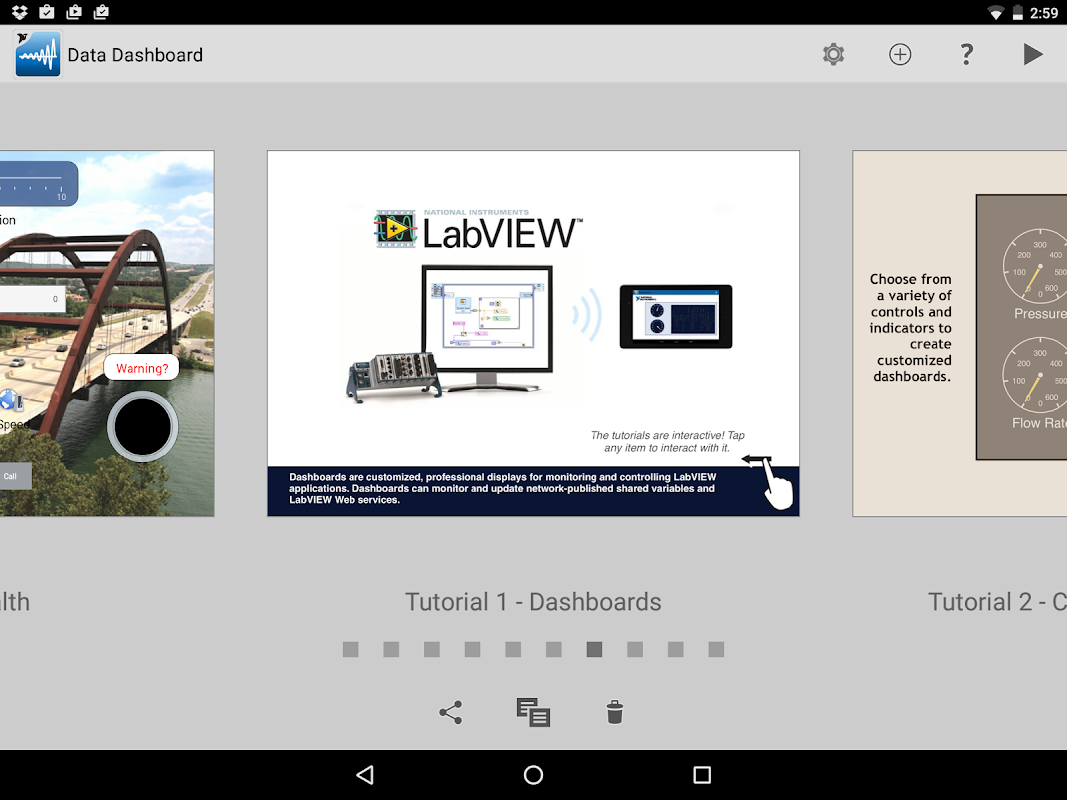 With Data Dashboard for LabVIEW, you can create a custom dashboard that you can use to remotely control and monitor running NI LabVIEW applications. You can connect deployed NI shared variables or LabVIEW Web Services with controls and indicators such as graphs, meters, and switches.