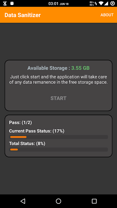 Data Sanitizer is optimized for speed and uses the system's resources heavily, therefore it is strongly recommended NOT to use the phone while the app is running.