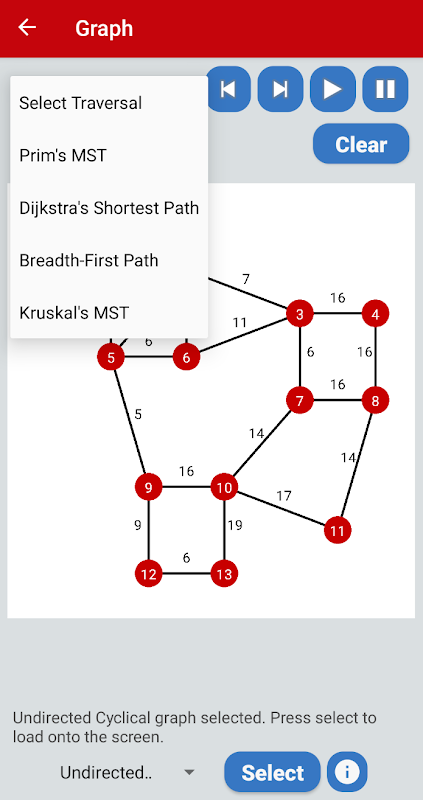 This app features both trees and weighted graphs. The trees you can currently choose from are: