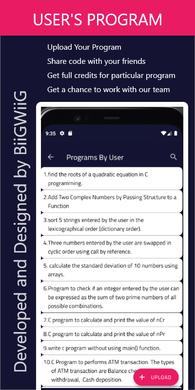 This app helps to solve Data structure code and Pattern Data structure . This app contains almost 500+ Programs and 2000+ Interview Examination Questions. This app has a very simple User Interface and contents can easily understood by User.