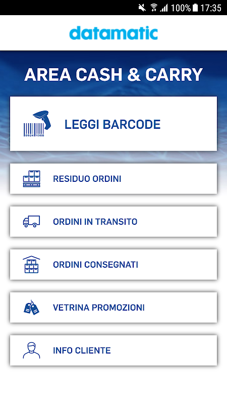 Questa app consente agli utenti registrati ed in possesso di un codice Cliente Datamatic di accedere in mobilità ad una serie di servizi come la consultazione della propria situazione ordini in transito, consegnati, residui, schede e specifiche prodotti.