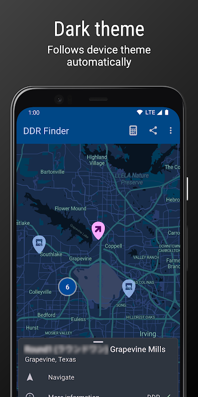 DDR Buscador aprovecha los datos de multitud de fuentes de varios sitios web de la comunidad con el fin de encontrar las ubicaciones sala de juegos recreativos, especialmente aquellos con los juegos de ritmo.