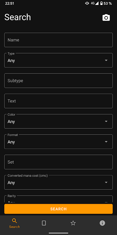 Busque tarjetas MTG (Magic The Gathering) usando una gran variedad de filtros. Puede buscar tarjetas por color, identidad de color del comandante, coste de maná, nombre, tipo ...