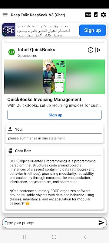 Experimente poderosas conversaciones de IA con Deep Talk, su puerta de entrada a modelos de lenguaje de código abierto de vanguardia. Chatea con los modelos DeepSeek, LLaMA y Phi AI, todo en una cómoda aplicación móvil. Obtenga respuestas inteligentes, genere código y explore las capacidades de múltiples modelos avanzados de IA directamente desde su dispositivo Android. Ya sea que esté buscando inspiración creativa, ayuda técnica o una conversación intelectual, Deep Talk ofrece asistencia responsiva de IA impulsada por los últimos modelos de lenguaje.