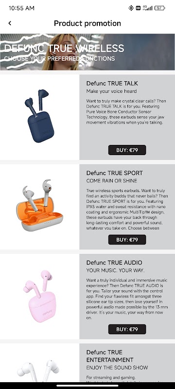 Como usuario de Defunc, siempre tendrá la oportunidad de comprar otros productos de Defunc a precios atractivos a través de enlaces de compras para productos relevantes para su amor por la música y otras experiencias de transmisión.