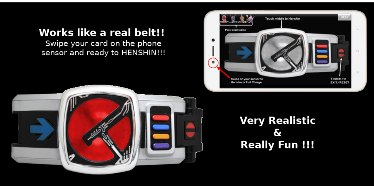 Este conductor Kamen Rider Den-O está hecho para aquellos que realmente aman la serie Kamen Rider. Puedes usar esta aplicación para tu cosplay o simplemente jugar por diversión. ¡Sal y juega con tus amigos deslizando tu tarjeta sobre tu teléfono inteligente para ir a HENSHIN!