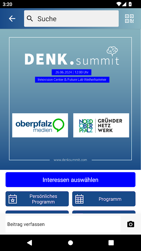Bienvenido a la app oficial de DENK.summit 2025, el punto de encuentro líder para innovadores, startups y profesionales en Alto Palatinado. Esta app es tu complemento ideal para el evento de startups y carreras profesionales del año, que tendrá lugar el 25 de junio de 2025 en Weiherhammer. Nuestra app, intuitiva e interactiva, fue desarrollada específicamente para ofrecerte una experiencia óptima antes, durante y después del evento.