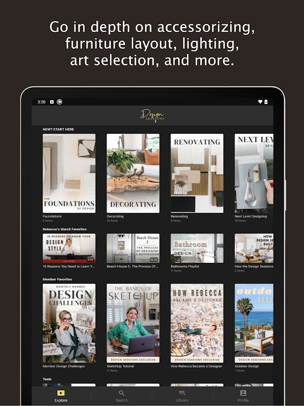 Con más de 70 horas de capacitación en diseño de interiores disponibles para los miembros, las sesiones de diseño le enseñarán cómo pensar en su hogar como un diseñador.
