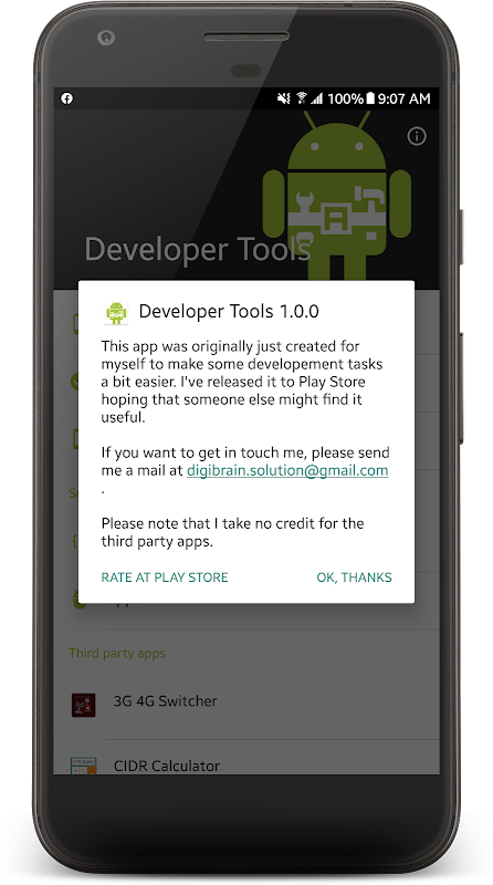 Works for Android 3.5.2 and up. Doesn't need any permissions to run. Please give me a word if there's something you'd like to see included in this app. :)