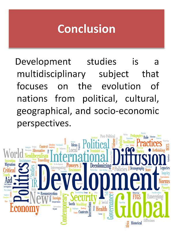 Los estudios de desarrollo son una rama interdisciplinaria de las ciencias sociales. Los estudios de desarrollo se ofrecen como una maestría especializada en varias universidades de renombre en todo el mundo y, con menor frecuencia, como una licenciatura.