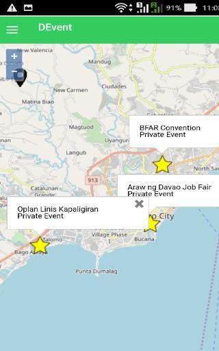 A mobile application for determining the shortest path to Events and Places in Metro Davao using Bellman-ford Algorithm and stochastic simulation. The app provides direction and an alternate route to the events of interest. Also, it lets event organizers to promote their events easily. Also, for the users be aware of local activities, mall sales, restaurant promos, festivals, or any happenings in your local area which guide the user to reach in the events of interest quicker since the application suggests alternate route based on distance and travel time. Users can have information about further events and activities in Metro Davao and give options to the user for route planning to get in the events of interest quicker.