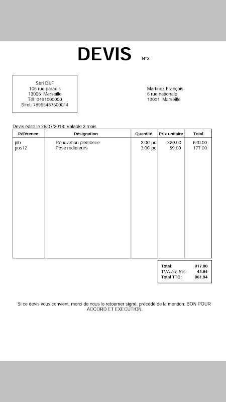 Avec l'application Devis et Facture Pro, vous pouvez éditer un devis chez le client en quelques minutes seulement.