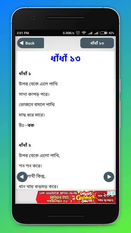 বাংলা ধাঁধাঁ or dada bangla এর সব মজার মজার ধাধা নিয়ে bangla dhadha apps বাংলা ধাঁধা - বুদ্ধির খেলা। গ্রাম বাংলার ধাঁধা (Riddle) বাছাইকৃত সব মজার ধাধা ও উত্তর bangla dhadha with answer নিয়ে আমাদের এই dhada in bengali বাংলা ধাঁধাঁ ও উওর অ্যাপ। আইকিউ বা বুদ্ধিমত্তা যাচাই iq test in bengali এর জন্য বাংলা ধাঁধা/ Bengali Quiz অনেক কার্যকরী জিনিস যা আপনার মজার সাথে বুদ্ধিও বাড়াবে ও এই dada apps বুদ্ধির চর্চা করতে সাহায্যও করবে। গ্রাম বাংলার ধাঁধা আমাদের ঐতিহ্য যা dhadha bangla dhadha ~ লোকসাহিত্যে ধাঁধা ও ধাধার বই / ধাঁধার উত্তর / ধাঁধাঁর আসর / বাংলা ধাধা তে পাওয়া যায় এবং এগুলো এই bangla dada 2018 ধাদার বই dhada bangla অ্যাপটিতে আমরা রাখার চেষ্টা করেছি।