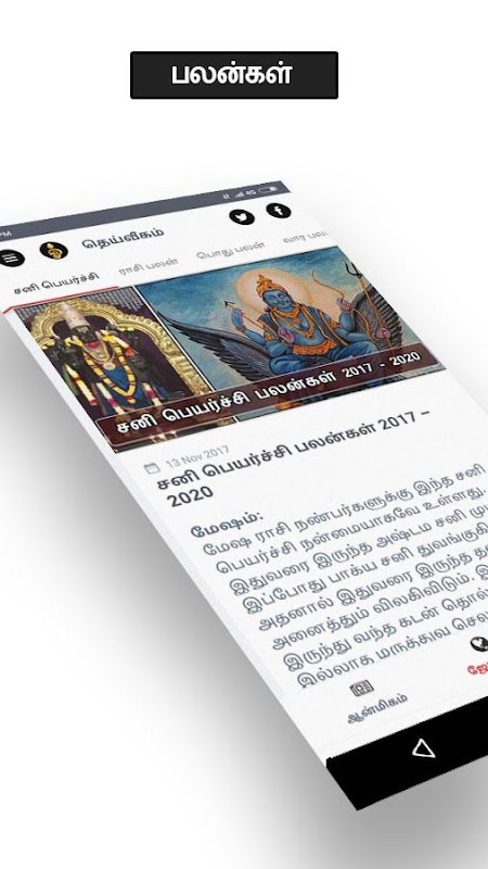 Dheivagam is No. 1 devotional app in Tamil. It has Tamil spiritual information, devotional Tamil stories, daily rasi palan, sani peyarchi palan, Tamil jothidam, devotional songs in Tamil, Tamil manthirangal, siddhargal history and many other stuffs. This spiritual app in Tamil will be very useful.