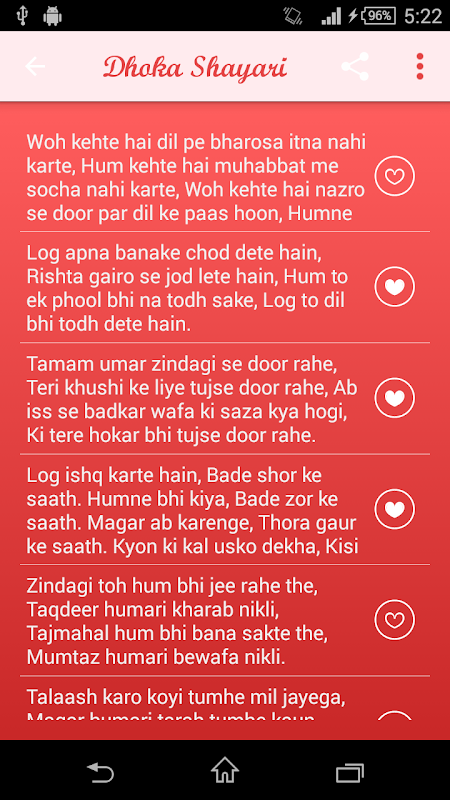? Opción Compartir para compartir shayari con amigos y familiares.